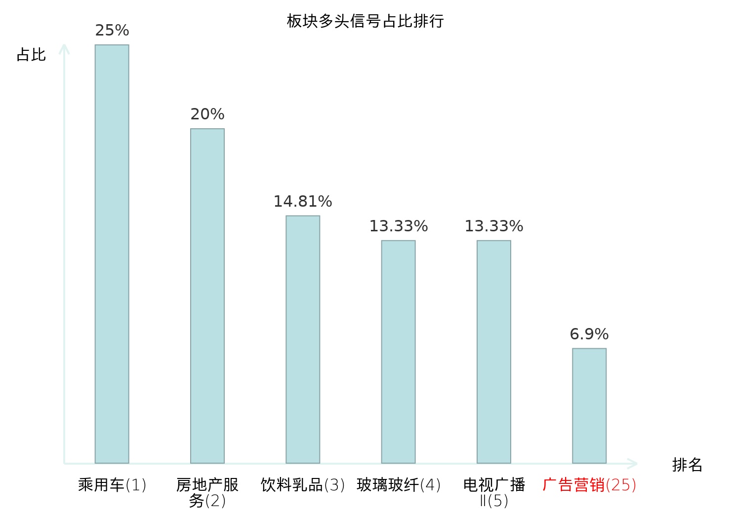 从主力宝信号数据分析,华媒控股所属的广告营销板块中共有2只股票发出主力多头信号,主力多头信号占比在全行业中排名第25位,较昨日上升51位。排名上升表明主力对广告营销板块的买入意愿增强,为投资者提供了有关市场情绪和潜在投资机会的参考。全市场所有行业板块中,乘用车板块的主力多头信号占比最高,位居第一。乘用车板块名次提升最快,较昨日上升117位。这些变化展示了不同行业间主力资金动向的趋势,有助于投资者更好地理解市场动态。