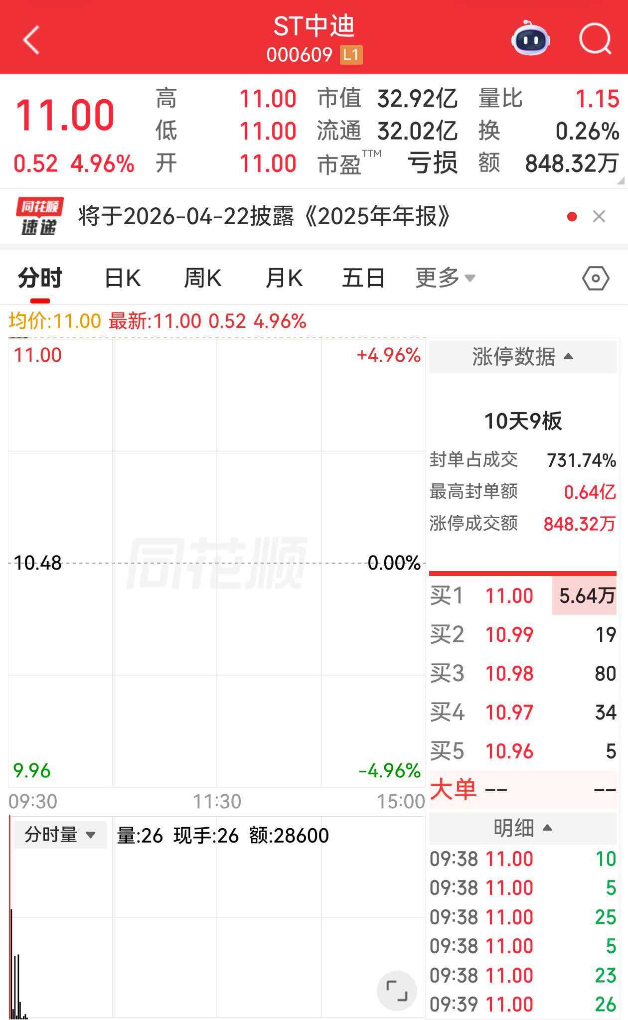 ST中迪涨停 收获10天9板