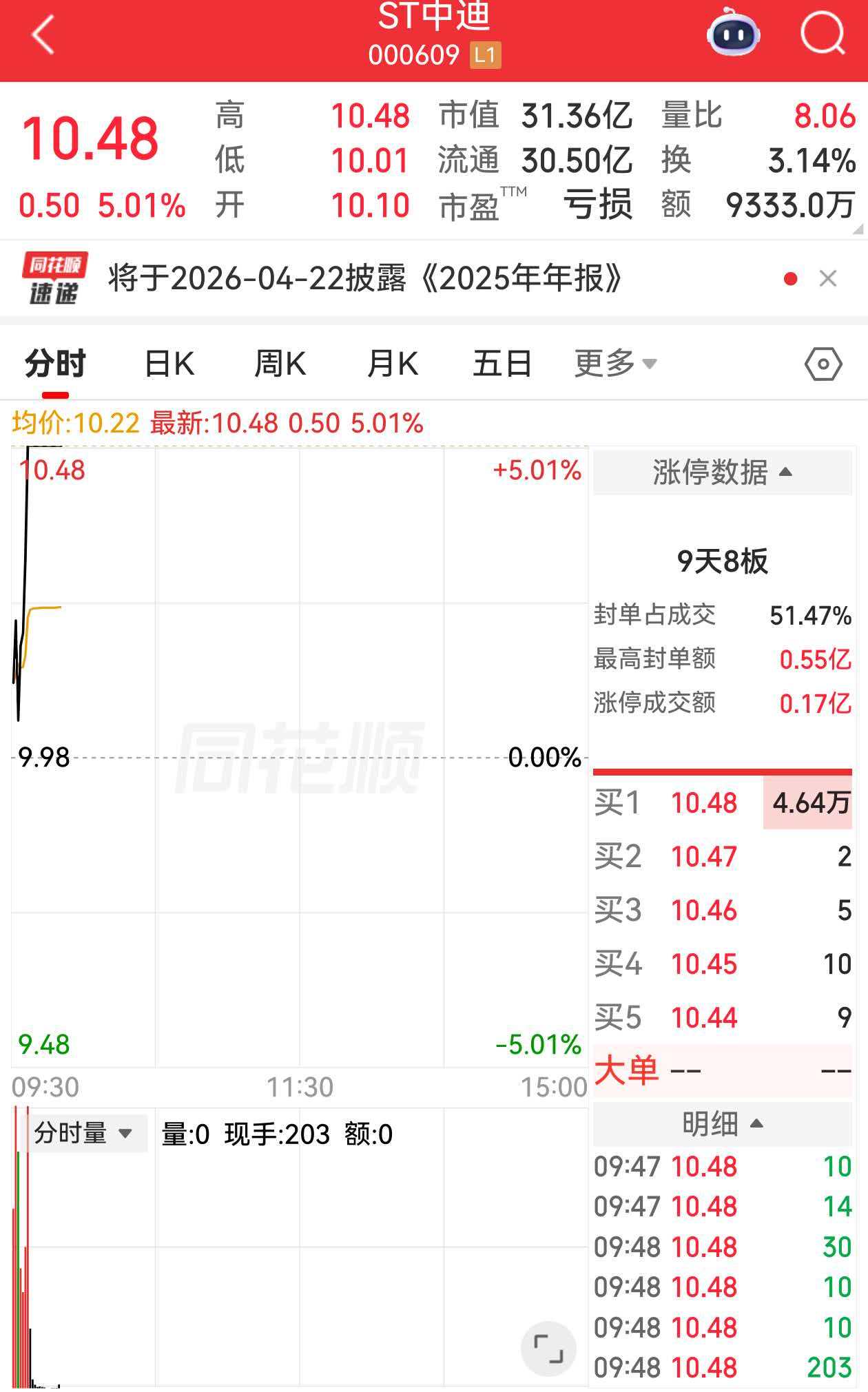 个股异动 | ST中迪涨停 近日将召开临时股东会
