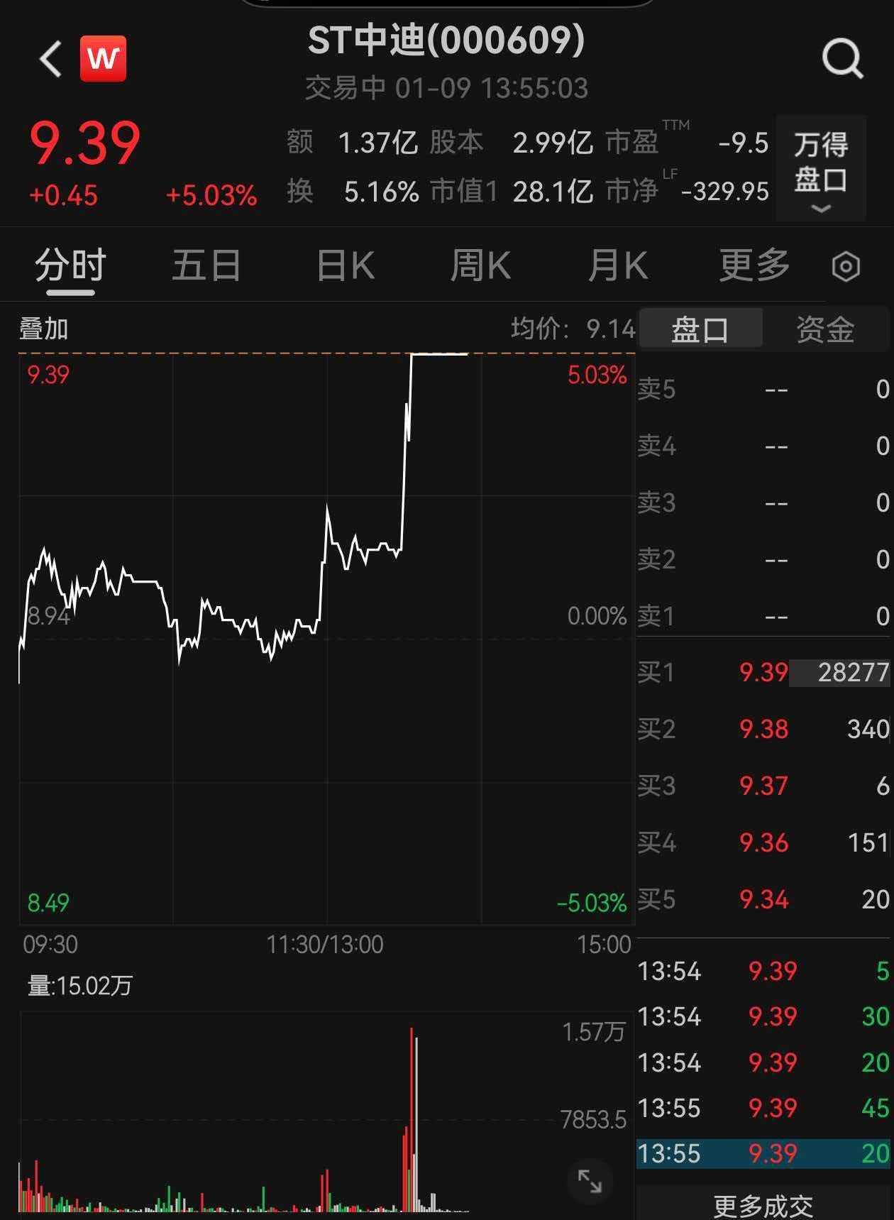 上证报中国证券网讯1月9日下午13点30分,ST中迪突然拉升涨停。