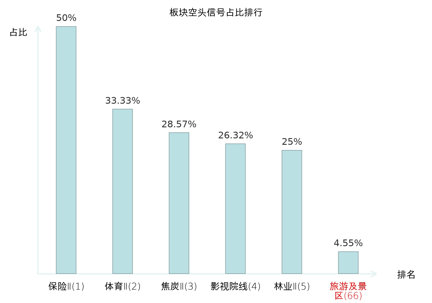 全市场所有行业板块中主力空头信号占比排名中,保险Ⅱ板块位居第一。装修建材板块名次提升最快,较昨日上升118位。