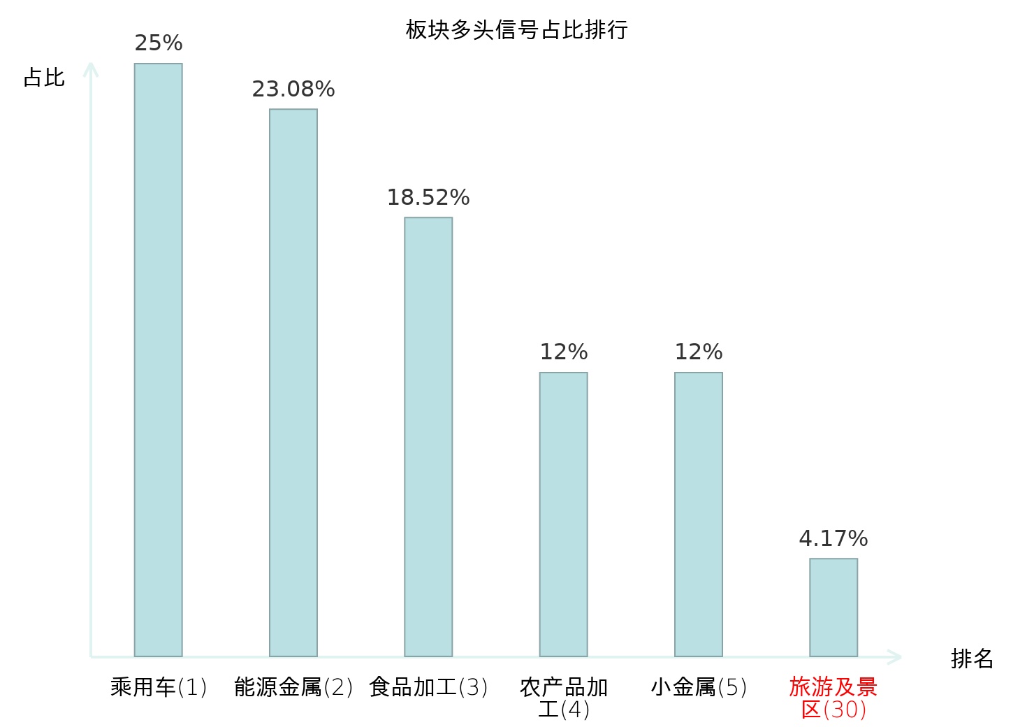 全市场所有行业板块中主力多头信号占比排名中,乘用车板块位居第一。乘用车板块名次提升最快,较昨日上升120位。