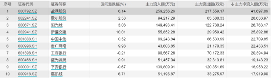个股方面,盐湖股份、歌尔股份、阳光城主力资金净流入金额居前,分别净流入4.17亿元、2.86亿元、2.68亿元。复星医药、中远海控、粤水电主力资金净流出金额居前,分别净流出7.92亿元、6.07亿元、5.61亿元。