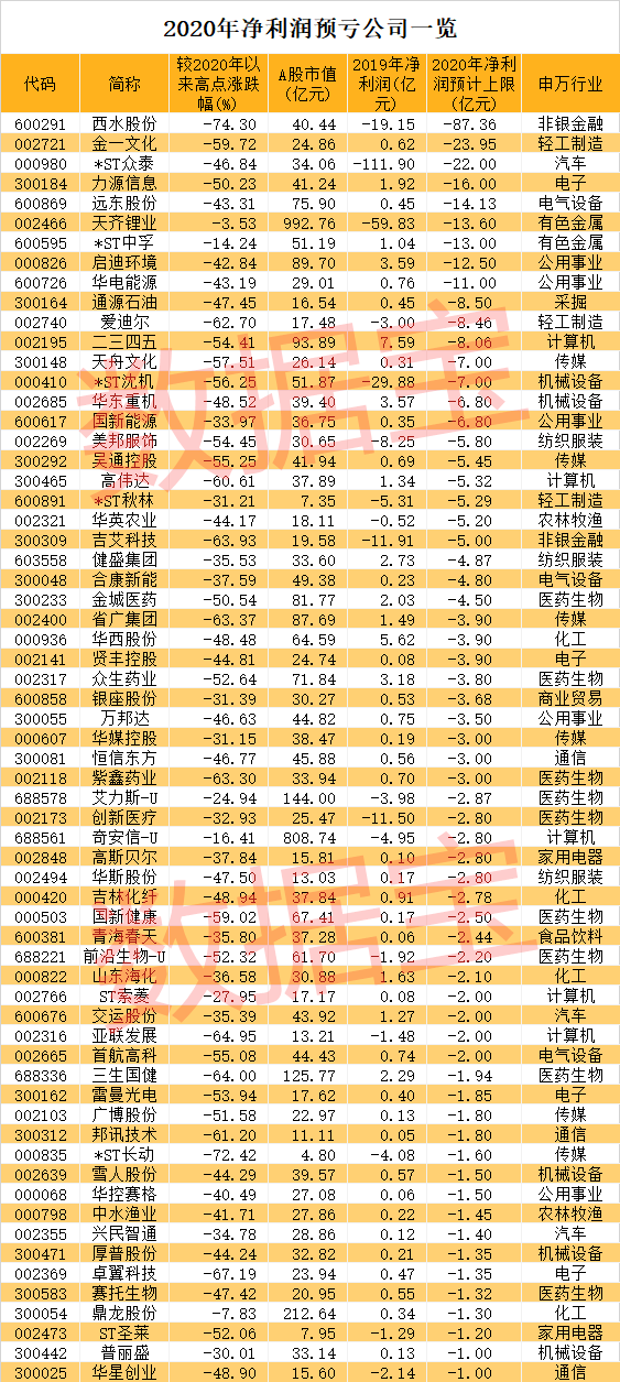 开年以来,资金对机构抱团公司追捧力度不减,这里面大部分都是绩优的行业龙头,低价低市值的绩差股遭到冷遇,市场“二八现象”显著。业内人士分析,当前A股进入到业绩预披露高峰期,投资者需规避年报业绩有雷品种;逢低关注回调到位的机构抱团品种以及疫情受损品种的恢复机会。那么当前有哪些公司业绩处于预亏状态?