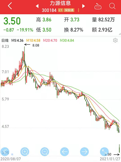 业绩预亏公司1月以来平均跌幅为10.61%,跑输同期沪指13.5个百分点。力源信息今日大幅低开,午后被封在跌停板上。最新收盘价创五年来新低。与2020年以来高点相比,该股累计回撤50.23%。