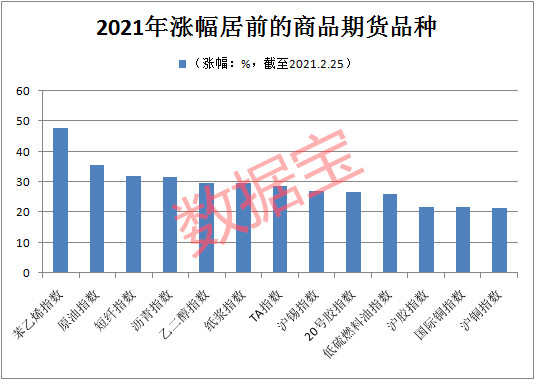 全球经济能否持续复苏,决定了这些因疫情而深陷业绩困境的板块能否走出泥潭。不过,从商品市场的表现可以预见市场对全球经济复苏产生了一致预期,如非金属建材、油脂油料、软商品、有色、能源、化工纷纷大涨,不断创出阶段性高点。数据宝统计显示,年初以来,64只商品品种指数中,超八成实现上涨,更有13只商品品种指数涨幅超20%,其中苯乙烯、原油指数涨幅居前,分别上涨47.82%、35.67%。
