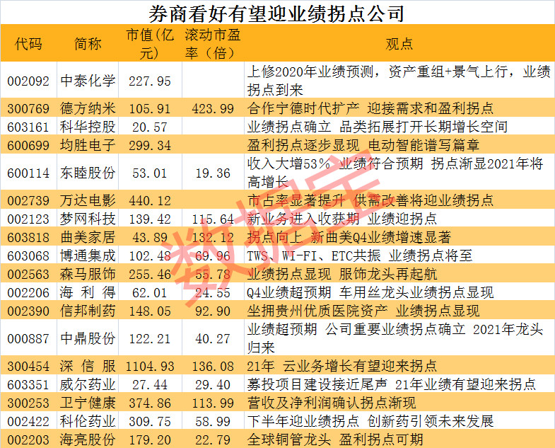 这些公司业绩有望迎拐点