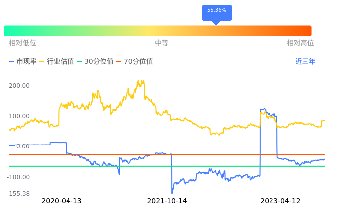 奥园美谷当前市盈率PETTM为-8.62,在所属的医疗美容中,市盈率PETTM排3名。前5名分别为华熙生物PETTM55.30、爱美客PETTM94.71、奥园美谷PETTM-8.62。从PETTM估值走势数据来看,奥园美谷当前市盈率PETTM为-8.62,超过近3年73.76%的历史数据。