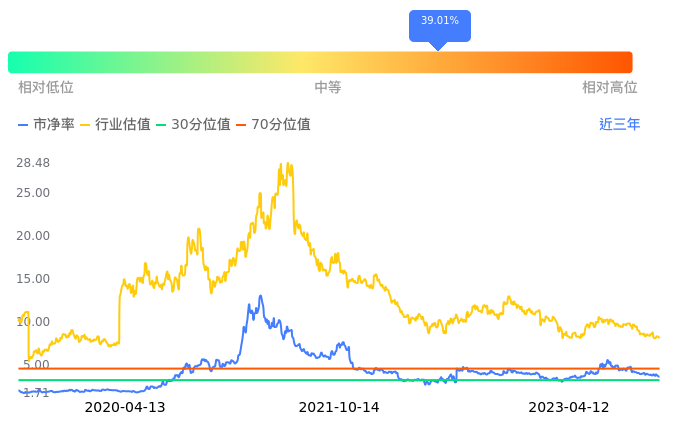 2023年04月12日,奥园美谷下跌0.47%收于6.29,今日成交金额6852.91万元。下文将从市盈率PETTM、市净率PB、市现率3个角度去分析公司估值情况。