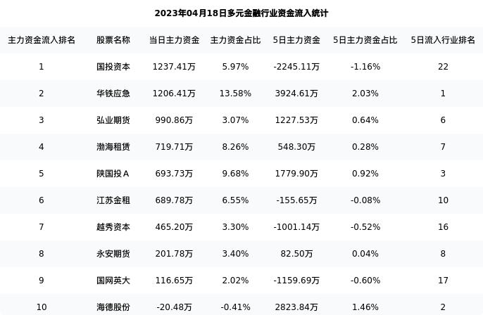 从主力资金流向来看,多元金融行业今日主力资金流入18.64亿元,在所有申万二级行业中排名:1/131。