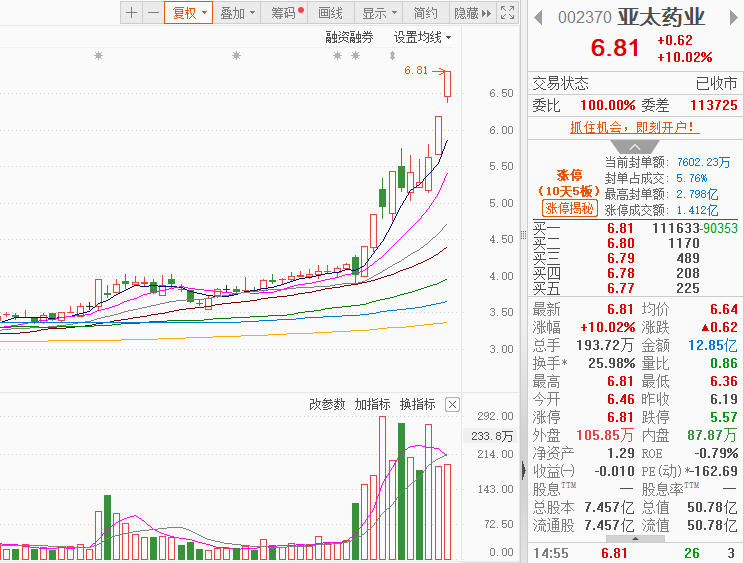 市场情绪:市场热点较为杂乱,个股跌多涨少,全市场超3000只个股下跌。今日共43股涨停,连板股总数9只,22股封板未遂,封板率为66%(不含ST股、退市股)。焦点股方面,西藏旅游一字涨停晋级7连板;创新药概念强者恒强,亚太药业10天5板、辰欣药业7天4板;超级水电概念午后反弹,南方路机、山河智能、西藏天路、西宁特钢均走出7天6板,深水规院20CM7天5板。