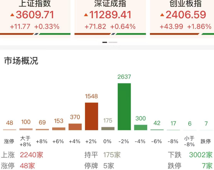 大盘分析及后市展望;今日,沪深两市小幅低开,开盘后展开震荡,盘中一度回落下,随后集体拉升再度翻红。此后,两市于昨日收盘附近窄幅震荡,创业板则继续高歌表现抢眼。尾盘,多板块探底回升下,指数一度拉升,深成指和创业板指再创年内新高下,沪指仍处高位震荡格局。热点方面,受多重因素催化(创新药港股持续走强,基孔肯雅热疫情)医药生物板块集体上行,医疗服务、CRO、重组蛋白、创新药、化学制药、生物制品等板块涨幅居前。受英伟达创新高刺激,AI算力相关板块走强,PET铜箔、半导体、F5G概念、光刻机、先进封装等板块涨幅居前。全天来看,大金融震荡走低,银行、保险、多元金融同步下跌,调控大盘上涨速度,创业板指数站上2400点整数关口。尽管指数全线上涨,成交量放量至1.8万亿,但市场仍有近6成个股下跌。