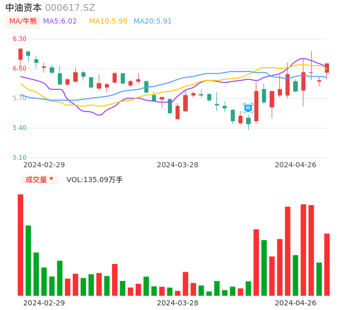04月26日,中油资本收报6.05,股价涨幅2.89%,成交金额8.08亿元,换手率1.07%。