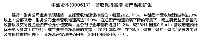值得注意的是:2024年04月东方证券的屈俊/于博文分析师,首次发布关于中油资本的研究报告,标题为:中油资本(000617):营收保持高增 资产温和扩张。