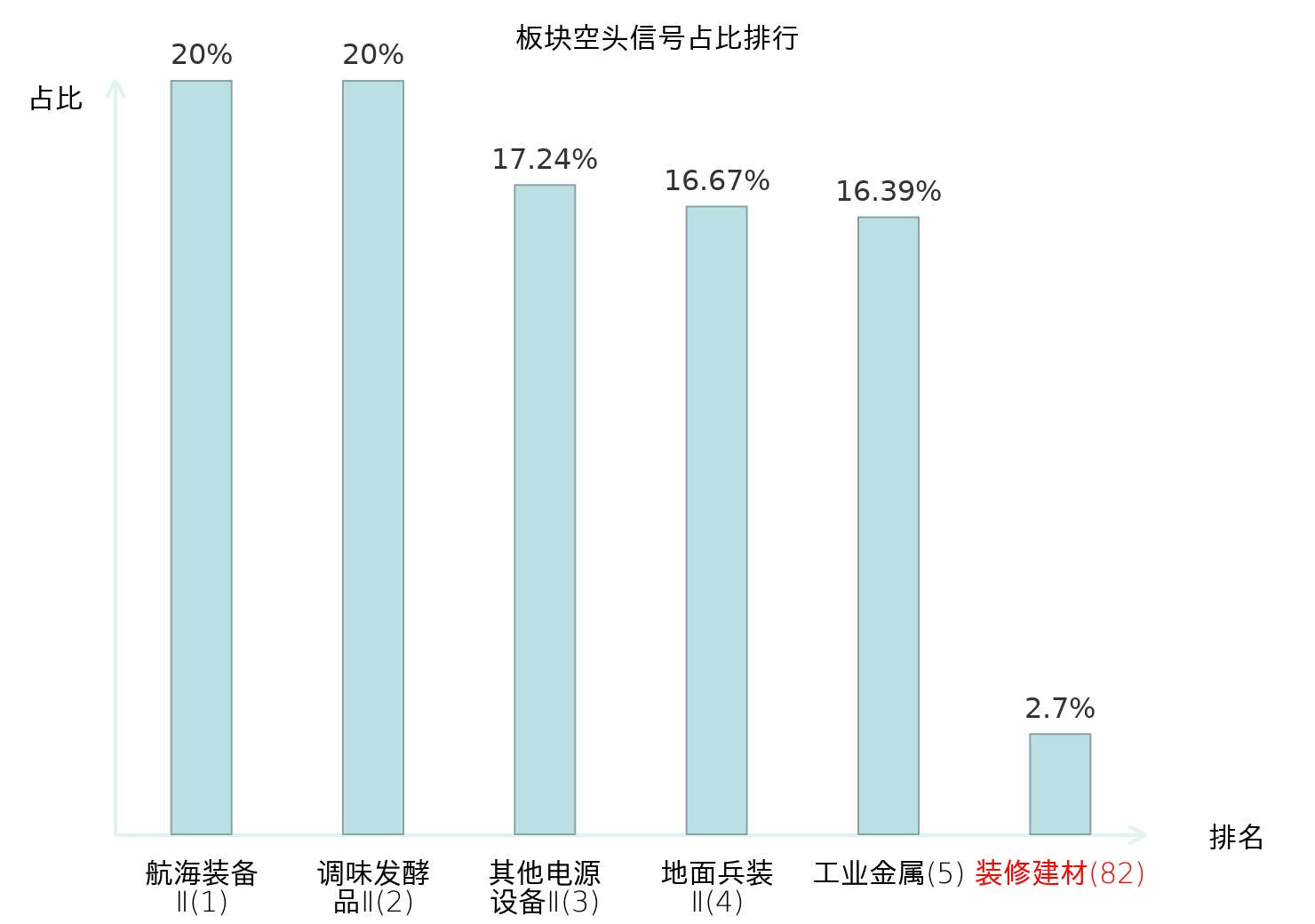 全市场所有行业板块中主力空头信号占比排名中,航海装备Ⅱ板块位居第一。调味发酵品Ⅱ板块名次提升最快,较昨日上升122位。