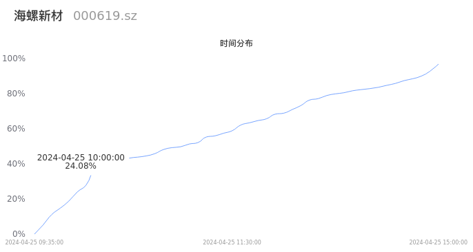 根据成交分布分析,该股票当天放量成交,成交清淡。时间上看,早盘前半小时成交量占据当天总成交量的24.08%;价格上看,成交呈现右偏峰。成交分布分析主要研究股票成交的分布特性,不具有预测功能,请知悉。