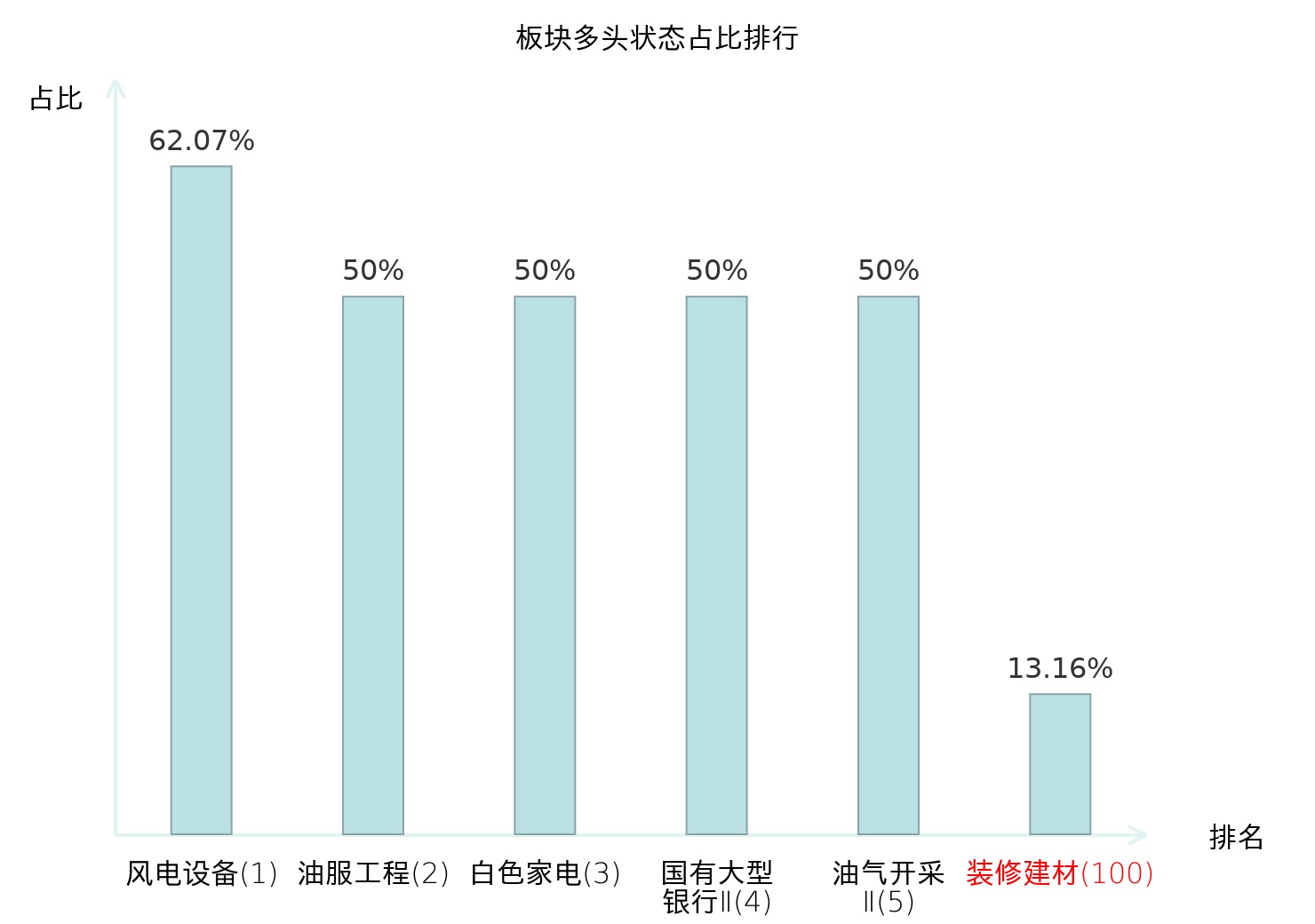 全市场所有行业板块中主力多头状态占比排名中,风电设备板块位居第一。动物保健Ⅱ板块名次提升最快,较昨日上升64位。