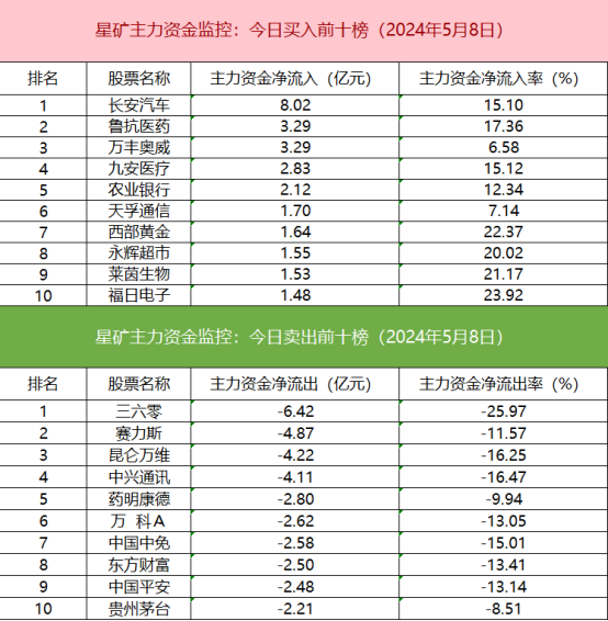 从个股主力资金监控数据来看,主力资金净流入前十的个股所属板块较为杂乱,长安汽车净流入居首。