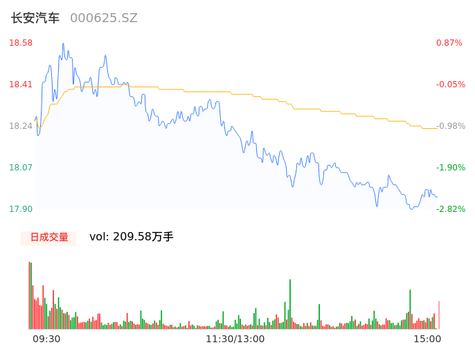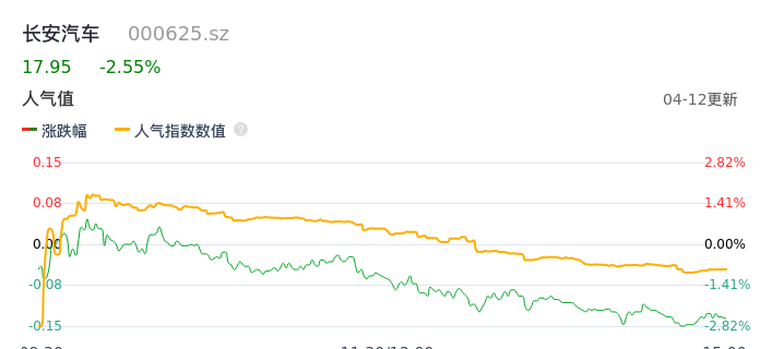 04月12日,长安汽车收报17.95,股价涨幅-2.55%,成交金额38.19亿元,换手率2.55%。