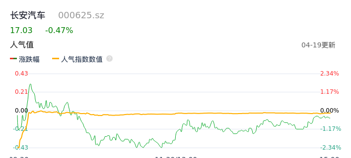 04月19日,长安汽车收报17.03,股价涨幅-0.47%,成交金额27.96亿元,换手率2.00%。