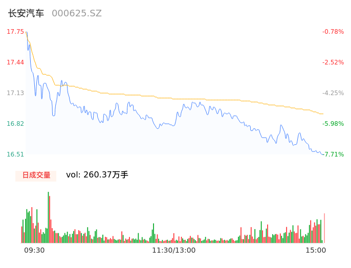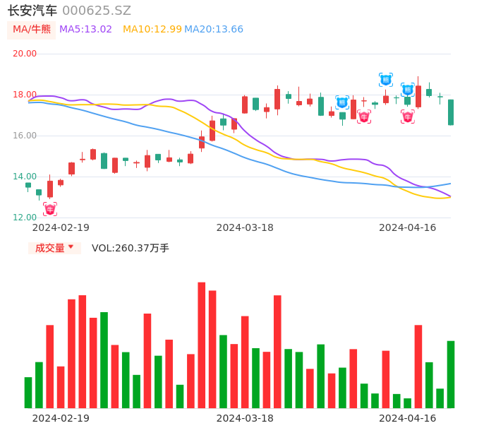 04月16日,长安汽车收报16.52,股价涨幅-7.66%,成交金额44.04亿元,换手率3.17%。