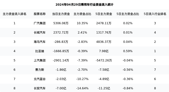 从主力资金流向来看,乘用车行业今日主力资金流入87.11亿元,在所有申万二级行业中排名:69/131。