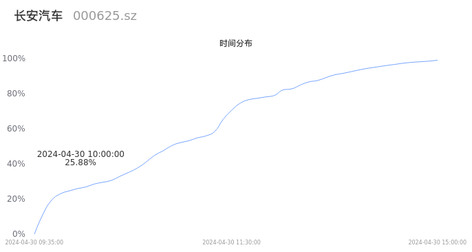 000625长安汽车2024年04月30日成交570.17万手,成交金额86.01亿元,相较昨日放量280.25万手,换手率6.94%,成交清淡。