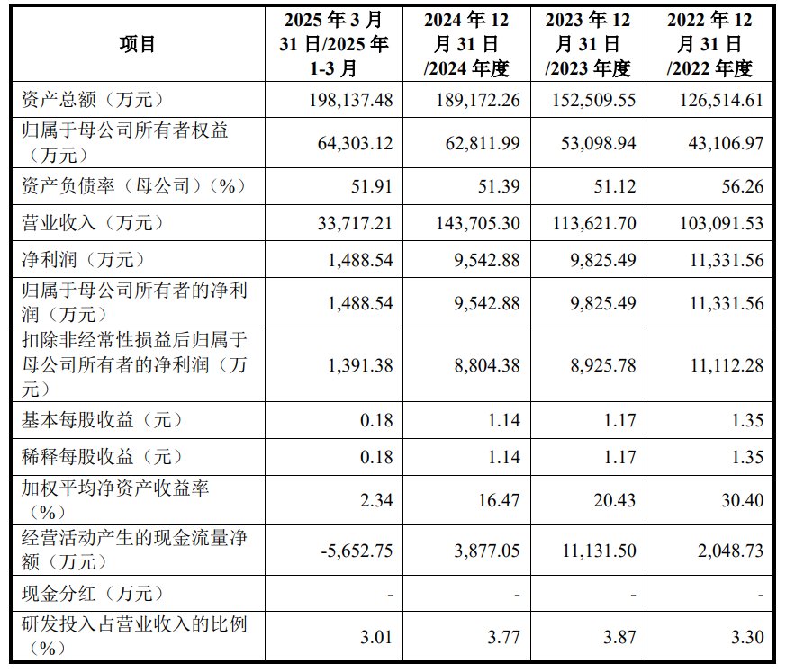财务方面,于2022年、2023年及2024年,公司实现营业收入分别约为10.31亿元、11.36亿元、14.37亿元人民币;同期净利润分别约为1.13亿元、9825.49万元、9542.88万元人民币。