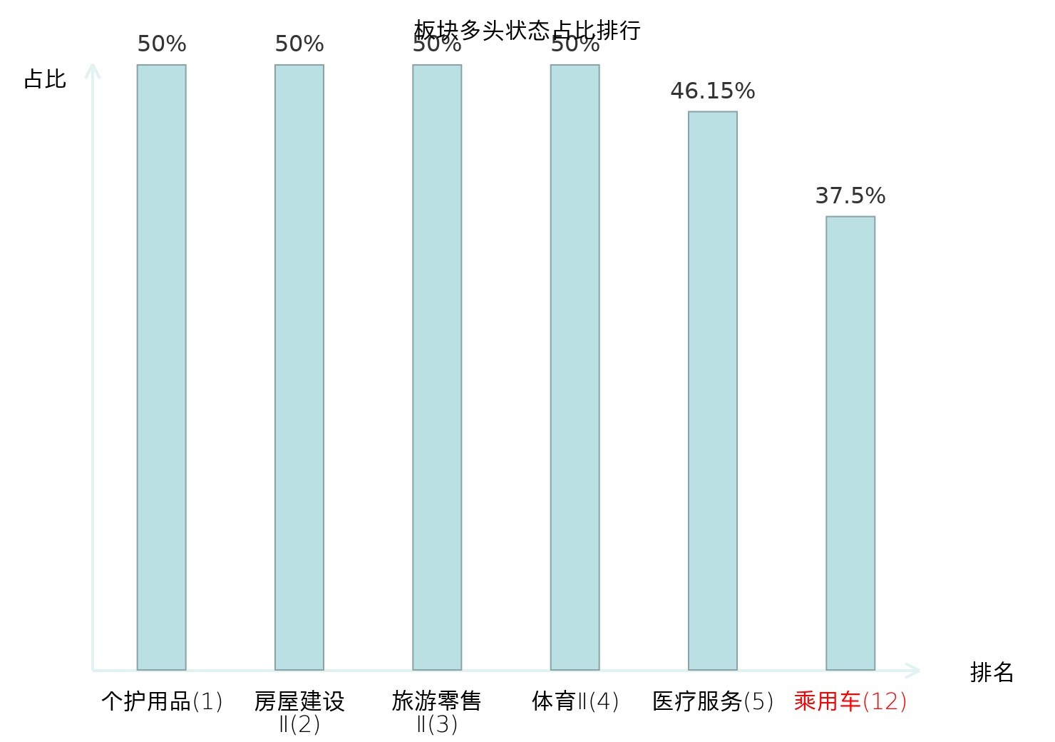 全市场所有行业板块中主力多头状态占比排名中,个护用品板块位居第一。影视院线板块名次提升最快,较昨日上升56位。