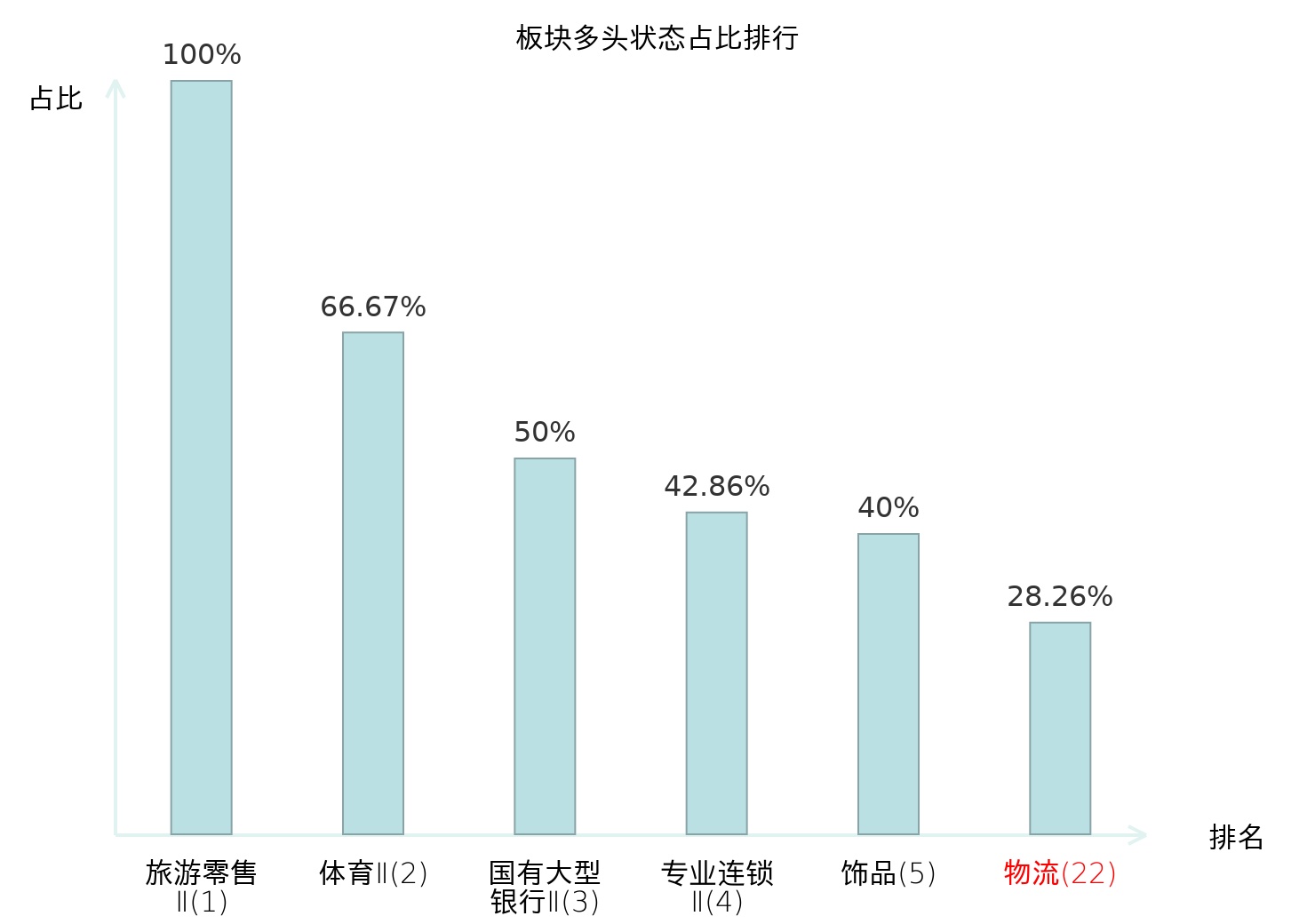 全市场所有行业板块中主力多头状态占比排名中,旅游零售Ⅱ板块位居第一。半导体板块名次提升最快,较昨日上升78位。