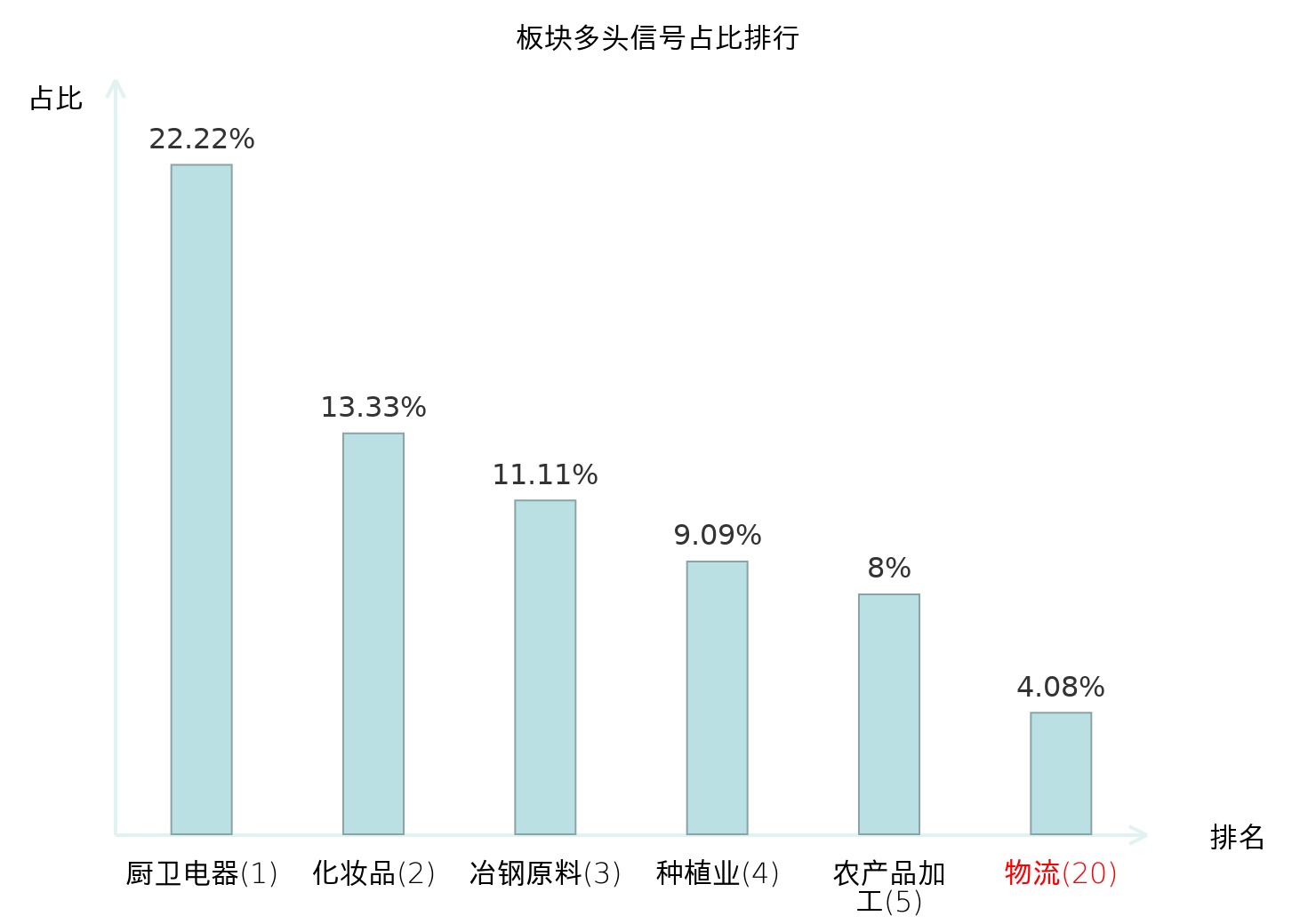 从主力宝信号数据分析,远大控股所属的物流板块中共2只股票发出主力多头信号,主力多头信号占比在全行业中排名第20位,较昨日上升65位;较高的排名表明主力对于该板块整体看多意愿较强,此次大幅上升可能反映了主力对该板块态度的明显转向;全市场所有行业板块中主力多头信号占比排名中,厨卫电器板块位居第一;化妆品板块名次提升最快,较昨日上升104位;这些变动揭示了不同行业间主力资金动向的结构性调整,为投资者判断市场情绪分化及潜在关注方向提供了客观依据。