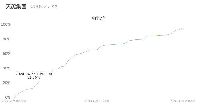 000627天茂集团2024年04月25日成交23.32万手,成交金额5225.14万元,相较昨日放量2.91万手,换手率0.51%,成交清淡。