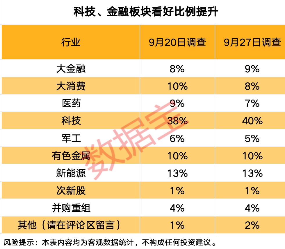 科技、金融板块看好比例提升