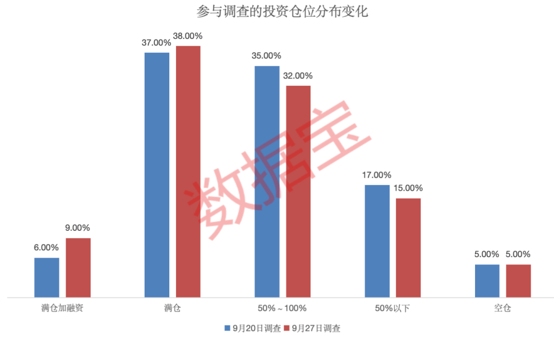 从仓位变化来看,本周25%的受访者进行了“加仓”;19%的受访者进行了“减仓”;7%的受访者进行了“清仓”操作;其余50%持仓不动。