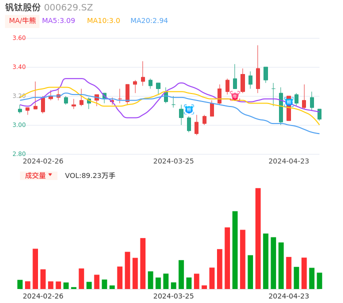 值得注意的是:2024年04月东海证券的周啸宇分析师,首次发布关于钒钛股份的研究报告,标题为:钒钛股份(000629)公司简评报告:业绩短期承压 静待液流电池产业化东风。