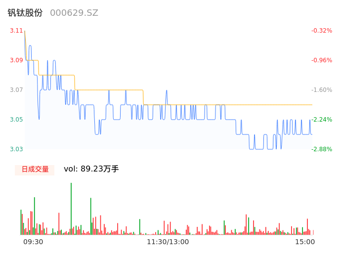 04月23日,钒钛股份收报3.04,股价涨幅-2.56%,成交金额2.73亿元,换手率0.97%。