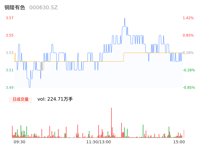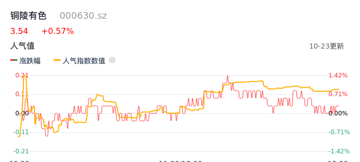10月23日,铜陵有色收报3.54,股价涨幅0.57%,成交金额7.93亿,换手率2.13%。