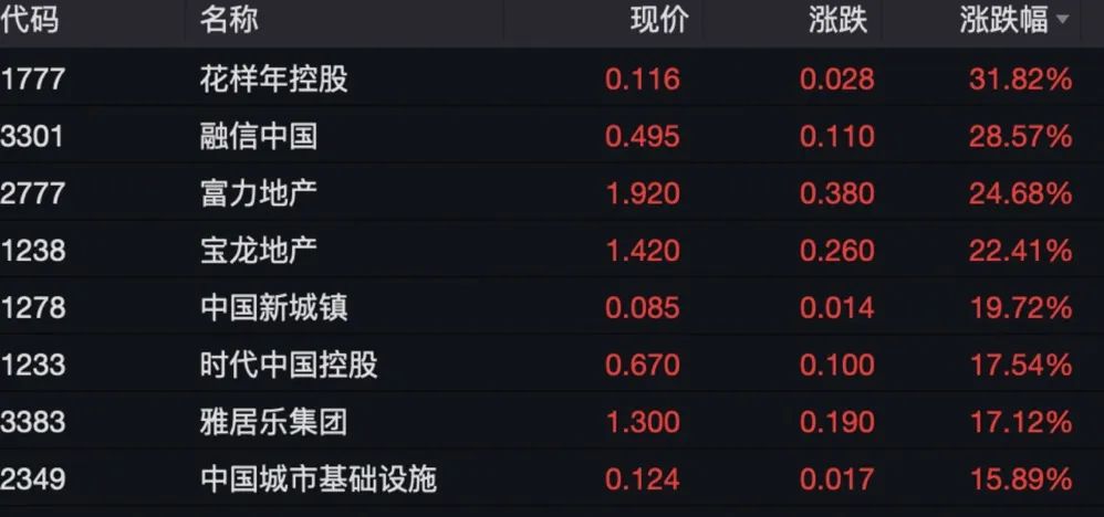 港股市场方面,多只内房股再大涨,成为港股市场最大亮点之一。
