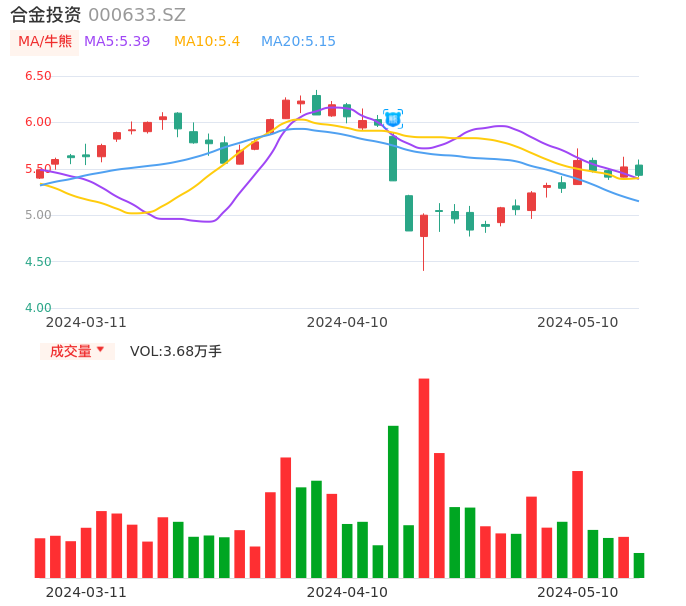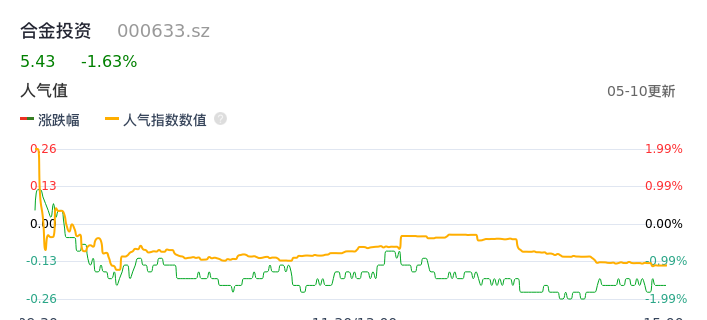 05月10日,合金投资收报5.43,股价涨幅-1.63%,成交金额2011.90万元,换手率0.96%。