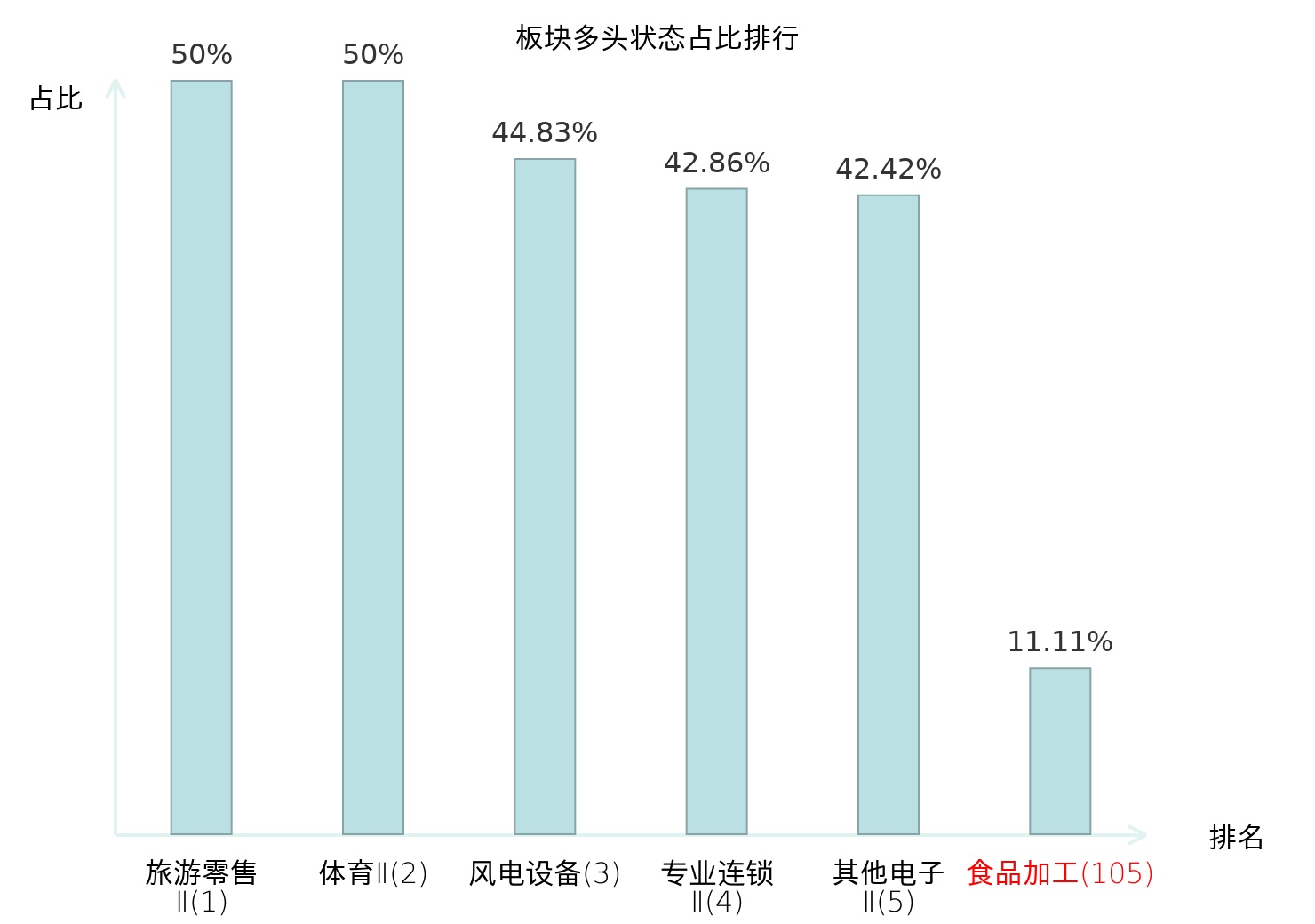 从主力宝信号数据分析,西王食品所属的食品加工板块中共3只股票处于主力多头状态,主力多头状态占比在全行业中排名第105位,较昨日下降17位。较高的排名表明主力对于该板块整体看多意愿较强;此次排名下降可能反映了主力对该板块态度的微调。全市场所有行业板块中主力多头状态占比排名中,旅游零售Ⅱ板块位居第一。化妆品板块名次提升最快,较昨日上升66位。这些变动揭示了不同行业间主力资金配置倾向的差异与动态调整,为投资者评估板块相对强弱及潜在结构性机会提供了客观依据。