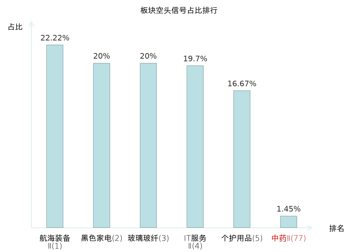 全市场所有行业板块中主力空头信号占比排名中,航海装备Ⅱ板块位居第一。纺织制造板块名次提升最快,较昨日上升107位。
