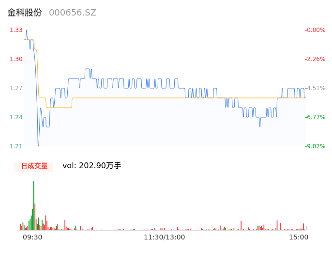 04月15日,金科股份收报1.26,股价涨幅-5.26%,成交金额2.55亿元,换手率3.82%。