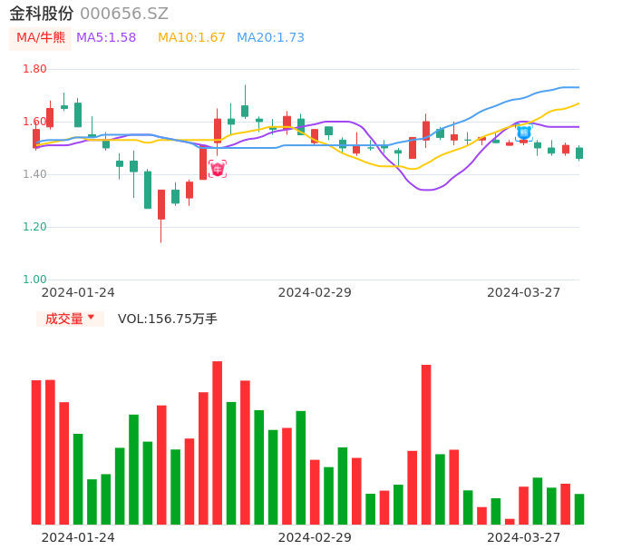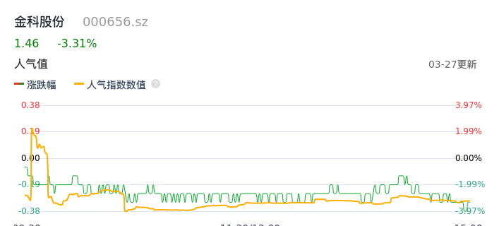 03月27日,金科股份收报1.46,股价涨幅-3.31%,成交金额2.31亿元,换手率2.95%。