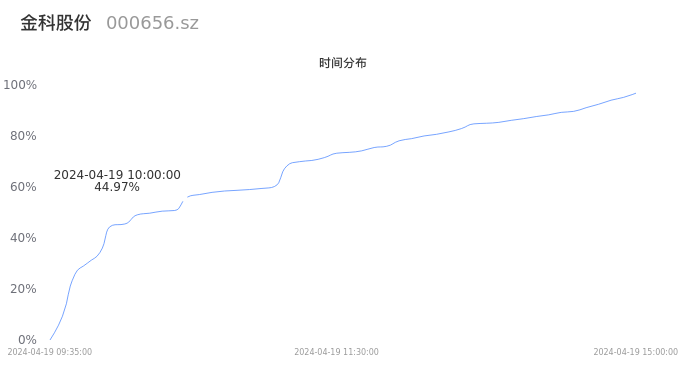 000656金科股份2024年04月19日成交111.98万手,成交金额1.37亿元,相较昨日放量8.76万手,换手率2.11%,成交清淡。