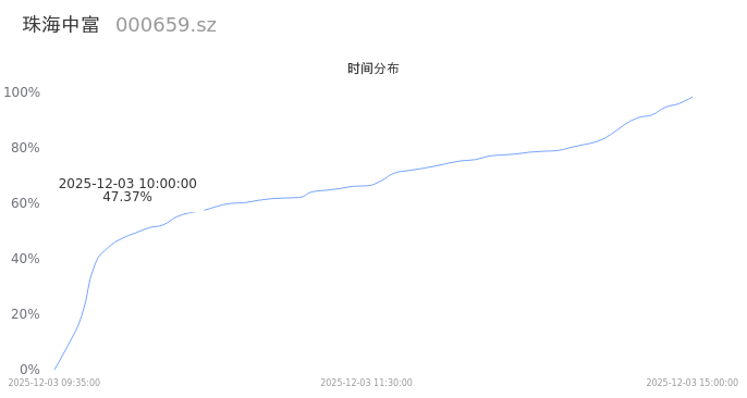 000659珠海中富2025年12月03日成交87.57万手,成交金额2.79亿,相较昨日放量8.96万手,换手率6.81%,成交清淡。