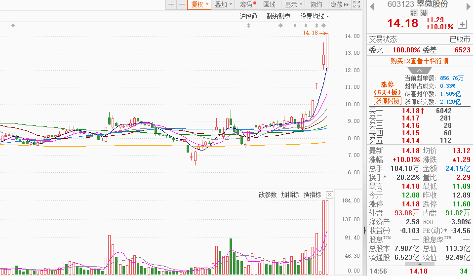 市场情绪:今日科技延续反弹,且蔓延到多个板块,一度激发市场热情,个股上涨和下跌家数基本相当。今日共76股涨停,连板股总数12只,24股封板未遂,封板率为73%(不含ST股、退市股)。焦点股方面,并购重组的滨海能源13天8板,化工板块联化科技6天5板,体育产业的共创草坪4连板;稳定币概念股午后再度走强,翠微股份、恒宝股份双双走出5天4板。