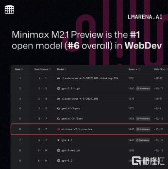 近日,在 LMARENA.AI 的 WebDev 榜单中,MiniMax M2.1 Preview 跻身全球第四名(前三名为Anthropic、OpenAI及Google)、中国第一。不仅如此,传奇程序员、Web开发框架Ruby on Rails之父DHH在X上对MiniMax M2.1给予高度评价,称其处理复杂代码库时展现出了令人印象深刻的高效能力。