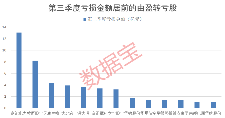 根据证券时报·数据宝统计显示,已公布三季报的个股中486股三季度单季归母净利润有所减少,其中89股由盈转亏,包括牧原股份、天康生物、大北农等多只猪产业股亏损金额居前。40股同比亏损幅度扩大,包括上海机场、人人乐、美好置业等。
