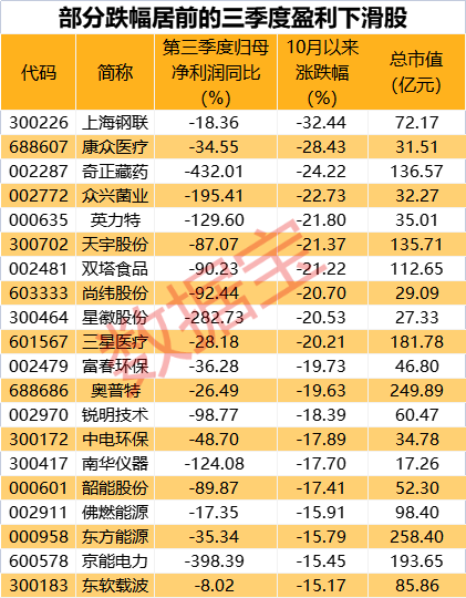 三季报盈利下滑股名单出炉
