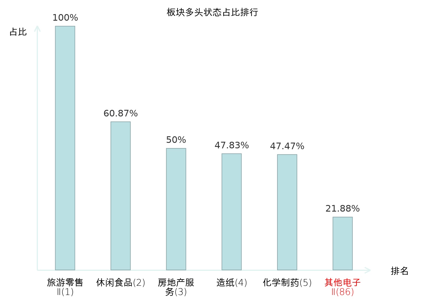 从主力宝信号数据分析,盈方微所属的其他电子Ⅱ板块中共有7只股票处于主力多头状态,主力多头状态占比在全行业中排名第86位,较昨日上升3位。排名的提升表明主力对于该板块整体看多意愿有所增强,这为投资者提供了关于该板块潜在投资机会的重要线索。全市场所有行业板块中,旅游零售Ⅱ板块的主力多头状态占比最高,位居第一;种植业板块名次提升最快,较昨日上升49位。这些变动反映了主力资金在不同行业间的偏好变化,为投资者观察市场趋势提供了重要依据。